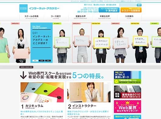 今月の初め、自分が通っていたWebデザイン専門のパソコンスクール【インターネット・アカデミー】のトップページがリニューアルされたんだ。メインビジュアルには大きく動画へのアプローチとして講師・受講生・卒業生とたくさんの方が登場しているんだけど、今回ご縁もあり自分も登場させてもらったよ。