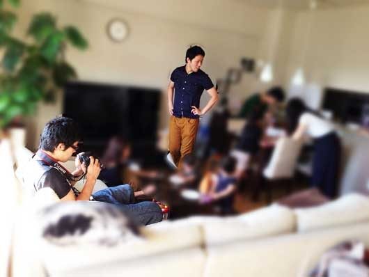 土曜日。アニメーターの杉山くん夫妻&クリエイティブ集団DONGURI代表:ミナベくん家族。と、うちの3家族で昼のお茶会です。