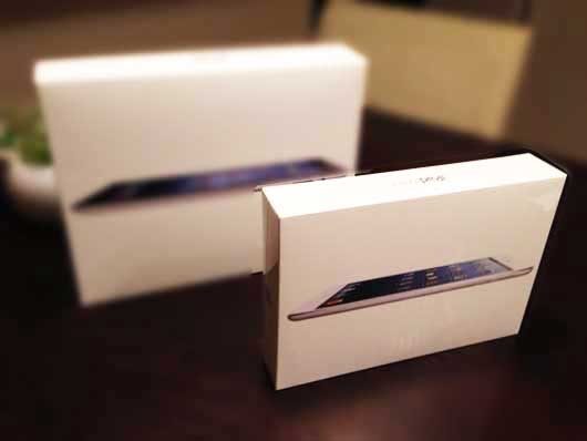 12月某日。実母の65歳の誕生日と、長年勤めた会社を定年退職したのでそのお祝いとしてiPad miniを家族一同で贈る事に致しました。(本人のリクエストもあり)※絵図らは自分で持ってるiPadとの箱比較として。